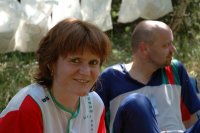 A teď trochu podrobněji. Po oba dny jsme byli kus za vesnicí na shromaždišti v přírodním amfiteátru, který poskytoval výborný výhled na všechny divácké kontroly přímo od oddílového stanu. Jak jsme běhali se můžete podívat na stránkách výsledků: štafety a družstva. Nutno ale podotknout, že ušáci (a hlavně ušandy) zrají jako víno. V kategorii dospělejších veteránek jsme slavili stříbrné medaile - Líbě, Janě a Mirce chybělo pouhých 19 sekund k medailím zlatým! Výborně! Dalším úspěchem byla bramborová medaile mladších veteránek Dáši, Rity a další Jany. V chlapech jsme bohužel neudrželi slibně rozběhnutý závod - Honza Šedivý předával na 4. místě z prvního úseku. Druhý den jsme pokračovali družstvy. Ekonomu se bohužel po nějaké době nepodařilo postavit dvě dospělá družstva. Během závodu se nic zvláštního nestalo - jenom těsně před koncem jsem si málem vypíchl oko při postupu na 23. kontrolu. Tratě byly celkem zajímavé i pěkně farstované (jako obvykle jsem měl samozřejmě nejdelší farstu :-) Kamenitý terén s kopci nebyl příliš obtížný mapově - v sobotu to bylo lepší. Tož nakonec jsme uhájili tuším 16. místo. Veteráni skončili ještě o tři místa lépe. No, příští rok bychom se už mohli konečně do těch družstev trochu opřít. Vždyť je to přece nejzábavnější závod za celý rok.