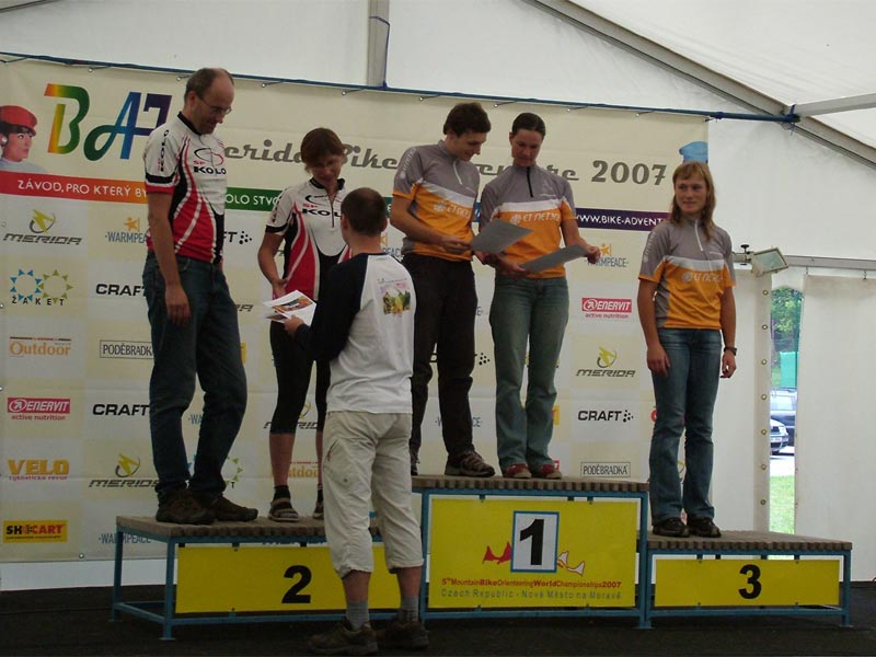 A teď konečně k výsledkům: Triumf Ekonomu v kategorii mixů se dal očekávat už po sobotě, i když významnější než průběžná kompletně obsazená bedna našimi dvojicemi byl čtyřicetibodový náskok Mirka s Markétou. V kategorii mixů existuje několik dvojic silných fyzicky a několik mapově, ale skloubit obojí na velmi vysoké úrovni zatím nikdo jiný nedokáže. To ukázala i druhá etapa, kterou také vyhráli – opět s výrazným náskokem, i když především před třetími v pořadí – na druhé místo se překvapivě dostali Michal a Dana Spudilovi z SP KOLO (což vzhledem k tomu, že SP KOLO je také partnerem našeho oddílu, je téměř ideální – protože na stupních vítězů jsou tím pádem vidět dresy obou sponzorů – společností ET NETERA a SP KOLO). Třetí místo pak patřilo opět Ekonomu, Pavlovi Sýkorovi s Adélou Boudíkovou. (Adéla má nějaké štěstí na spolujezdce, kteří potřebují odjet z místa závodů již před vyhlášením, na Ruské ruletě Karel Procházka na stupních vítězů také chyběl :-) Tyto výsledky znamenaly také potvrzení papírových předpokladů a vítězství v soutěži týmů, do níž se nakonec nezapočítával ani výsledek mixu na 5. místě Martin Sajal a Vendula Blažková (tím pádem jsem asi v roli nebodujícího kapitána :-). V kategorii mužů totiž výborným nedělním výkonem a druhým místem v etapě poskočili z třetí desítky na 5. místo v mužích Míra Seidl s Petrem Cvengrošem a při použití přepočítávacího koeficientu měli o 3,4 bodu více. Velký podíl na vítězství našeho týmu má ale také Báža Lepšík jakožto pořadatel Sixnumbers - nebýt jeho závodů, žádná z těchto dvojic by za Ekonom nejela (neboť tam jsem se poznal jak s Petrem, tak s Mirkem a Markétou, a ti zas přivedli Adélu...).